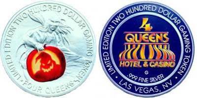 Image is of a 2007 $200 commemorative casino token from the Four Queens Hotel & Casino, Las Vegas, NV. Image is courtesy of the Silver Strikers Club. Details of this token can be found on the Silver Strikers Club website.