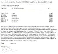 It is important to note that the scent does not contain tetrahydrocannabinol (THC) or any of the other cannabinoids that would cause problems at the airport or by law enforcement. Rather the fragrance is from synthetic materials that at worst could cause an allergic reaction.