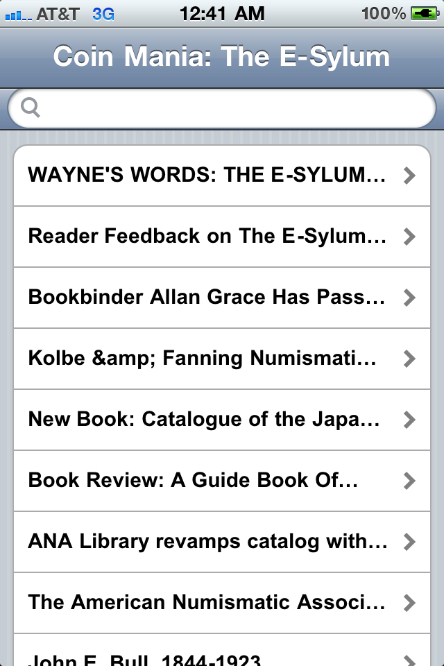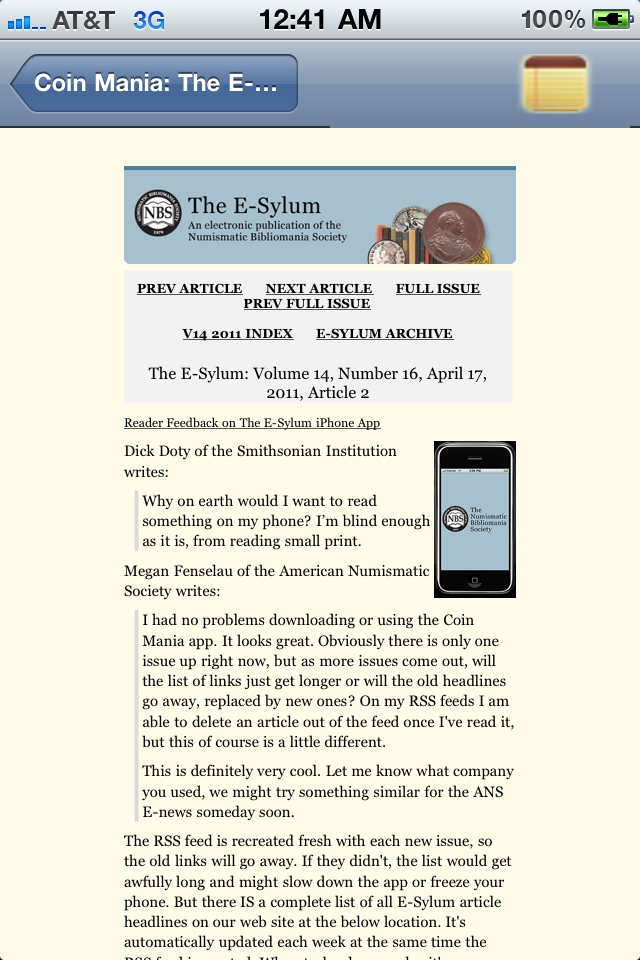 Speaking of apps, The Numismatic Bibliomania Society has created an app for its electronic newsletter, The E-Sylum.