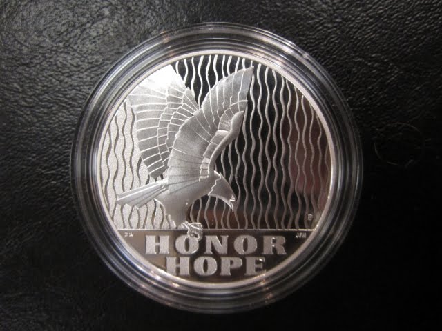 As numismatists, we can show our support in many ways. One way is to remember that later this year, the U.S. Mint will issue a silver commemorative medal whose surcharge of $10 per medal will be paid to the National September 11 Memorial & Museum at the World Trade Center to support the operations and maintenance. The bill, National September 11 Memorial & Museum Commemorative Medal Act of 2010, was signed into law on August 6, 2010 (Public Law No. 111-221 [Text] [PDF]) authorizes the production of 2 million one-ounce proof silver medals.