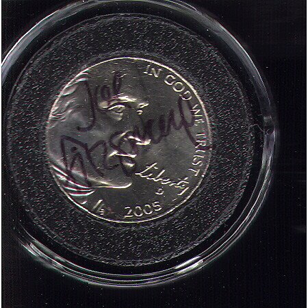 After asking around, I found that the company, Authenticated Ink, is an autograph collecting company that issued these cards in 2008 as a promotion. Authenticated Ink printed cards of sports and historical figures that included coins from the era of the person depicted on the card. I have had problems contacting Authenticated Ink (emails have not been returned), but sources tell me that there were not many of these cards issued.
