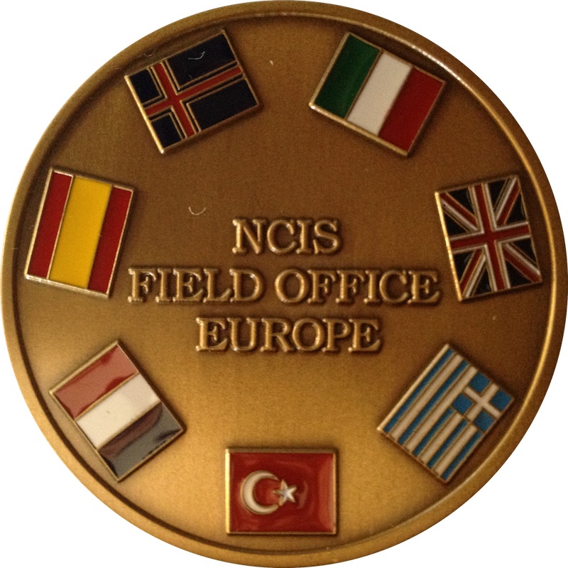 A few months ago I purchased the next challenge coin from the Naval Criminal Investigative Service (NCIS) European Field Office. I have not worked with NCIS nor have been investigated by them, but with the popularity of the show on CBS and the flags on the reverse, I thought it was an interesting coin. After trying to find out more information about the coin, I spoke with an NCIS investigator who worked in the Europe and Africa Field Office. I was told that the challenge coin was at least 15 years old since it has been that long since the NCIS reorganized offices and combined Europe and Africa into one office. My contact said that the reverse of the challenge coin was redesigned to remove the flags—which at the time represented where the support offices were located with the main field office in Italy. I learned a lot about NCIS from this person that does not make the television show that in their honor, I will add this challenge coin to my collection.